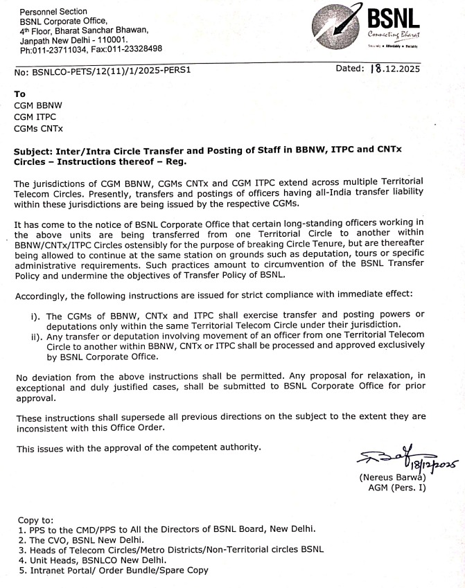 BSNL management pleaded for implementation of 3rd PRC with 15% fitment. Response of Secretary was positive but made certain important queries how BSNL is going to meet the additional expenditure of about Rs 2500 Cr. After implementation, taking bank loan and making payment like MTNL is not advisable, Secretary informed. BSNL should be able to meet the additional expenditure and come out with proposal how to meet the additional expenditure from internal recourses after implementation of 3rd PRC, Secretary directed BSNL. BSNL told Secretary that it will work out the details and submit it at the earliest.